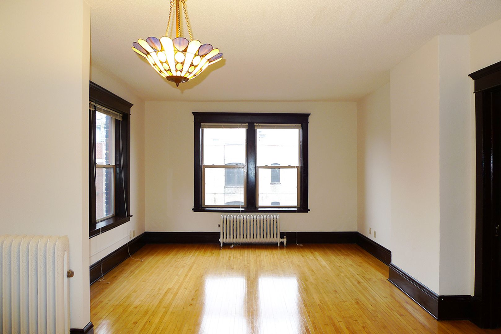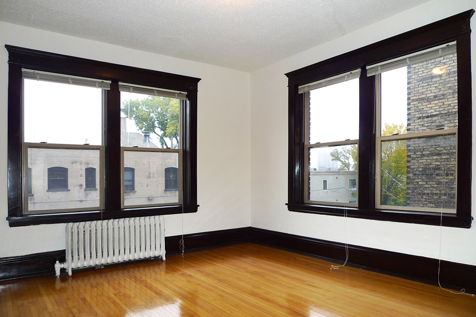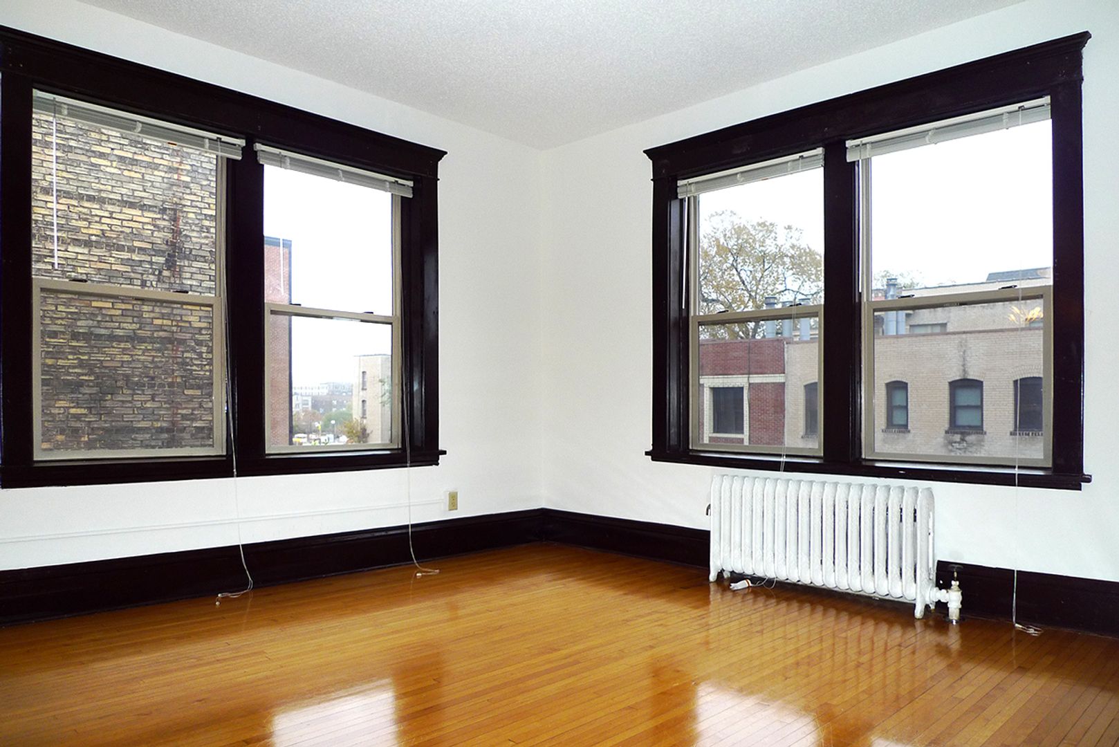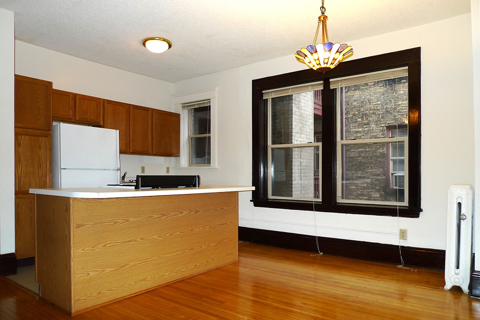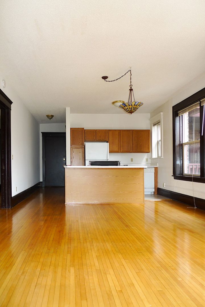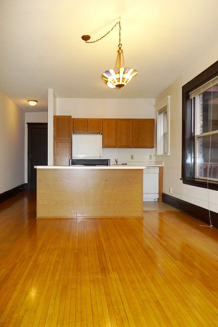 Stevens Community offers a spacious 1,000 sq ft, corner apartment on the second floor with two full baths and two king-sized bedrooms. Original hardwood floors run throughout the living areas, which open to a kitchen featuring a dishwasher, a kitchen island with storage, and ample room for dining. The unit includes three closets for storage and provides a downtown skyline view. Pet friendly and thoughtfully laid out, this apartment balances classic details with practical conveniences.