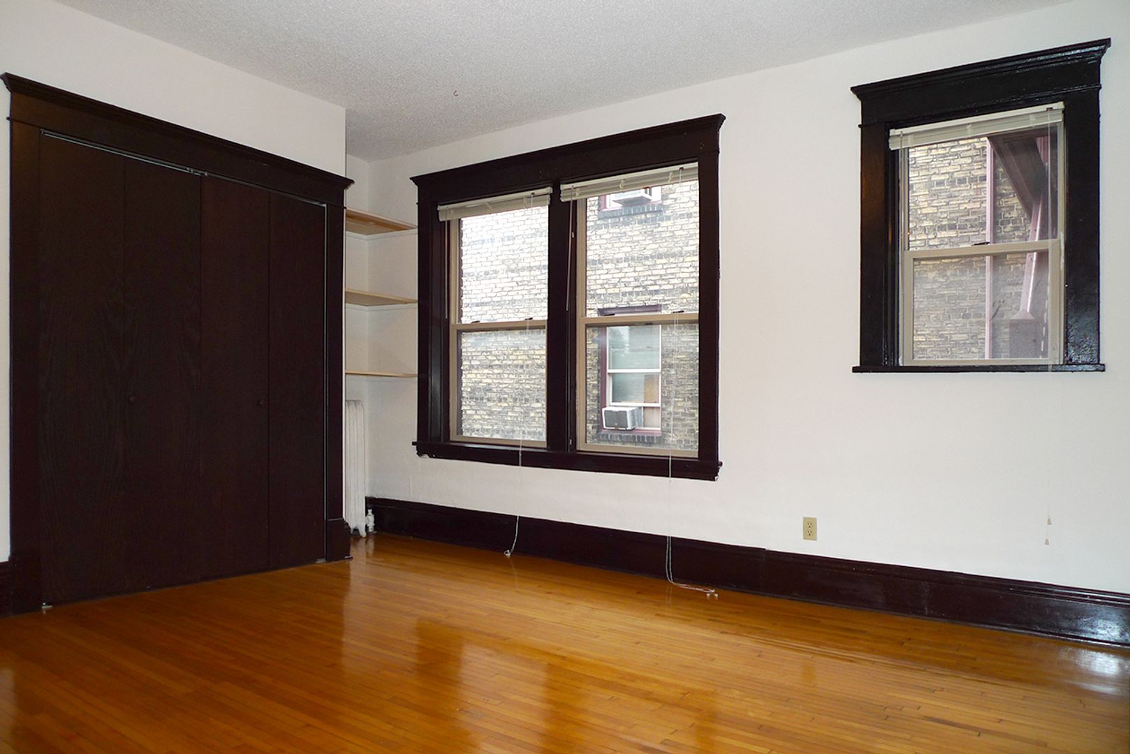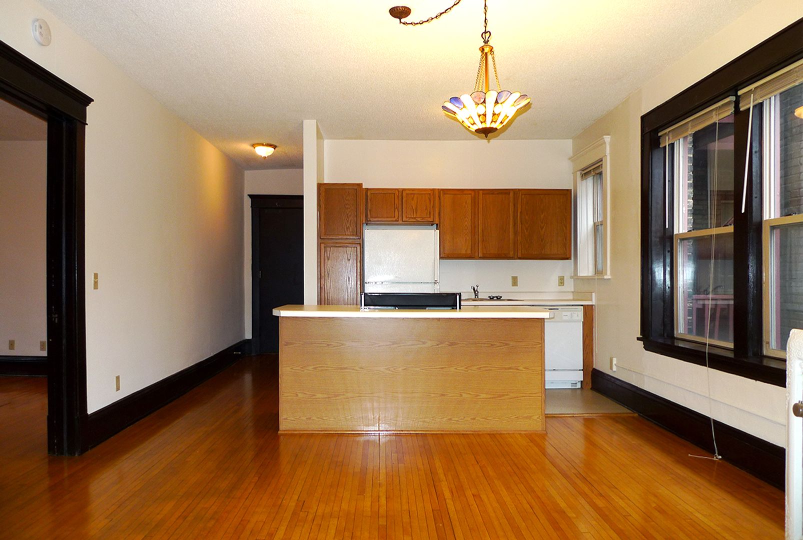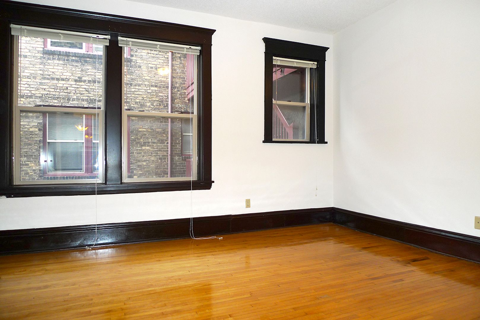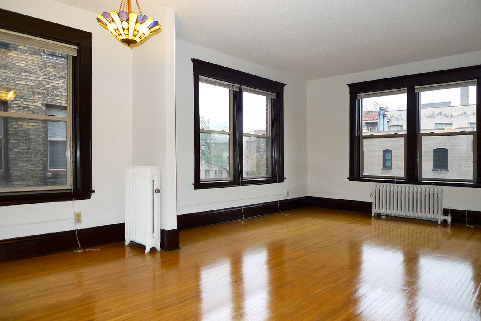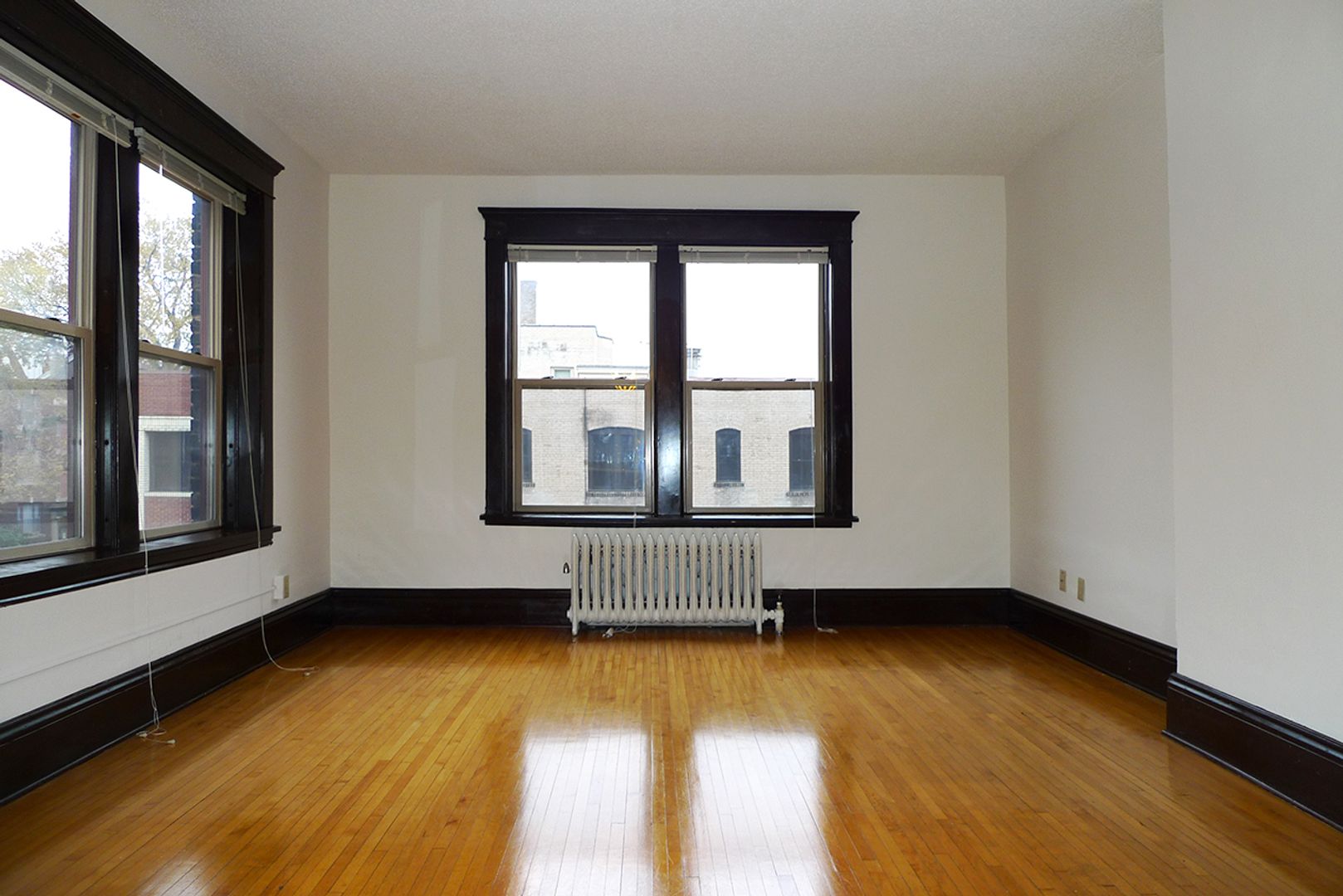 Stevens Community offers a spacious 1,000 sq ft, corner apartment on the second floor with two full baths and two king-sized bedrooms. Original hardwood floors run throughout the living areas, which open to a kitchen featuring a dishwasher, a kitchen island with storage, and ample room for dining. The unit includes three closets for storage and provides a downtown skyline view. Pet friendly and thoughtfully laid out, this apartment balances classic details with practical conveniences.