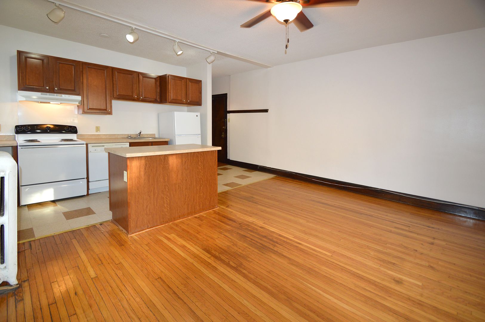 This cozy corner unit features 512 square feet of living space with stunning hardwood floors throughout. The kitchen is equipped with a convenient island for extra storage, an electric range, and a dishwasher for easy clean-up. You'll love the built-in linen space for added convenience. Plus, this pet-friendly apartment is perfect for those looking to bring their furry friends along. Heat, water, gas and garbage removal included; you pay electric. Don't miss out on this opportunity to call this charming one bedroom your new home. Contact us today for more information and to schedule a tour!
