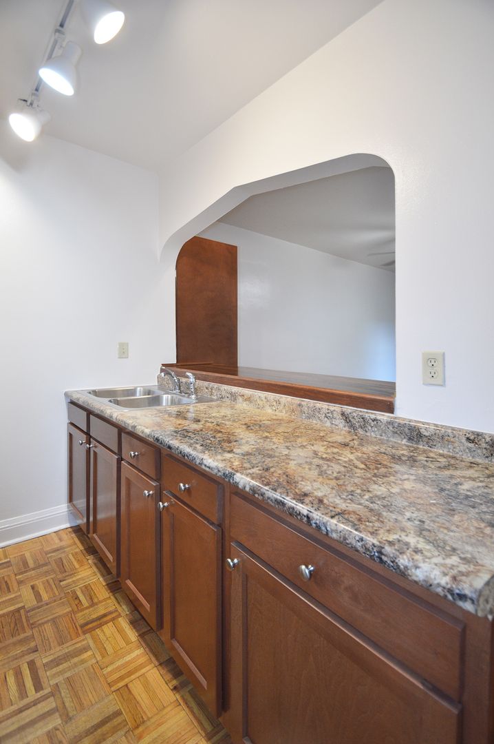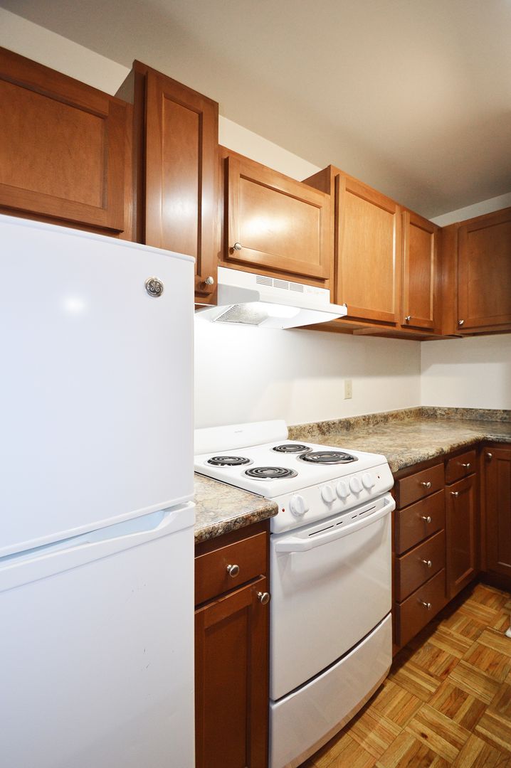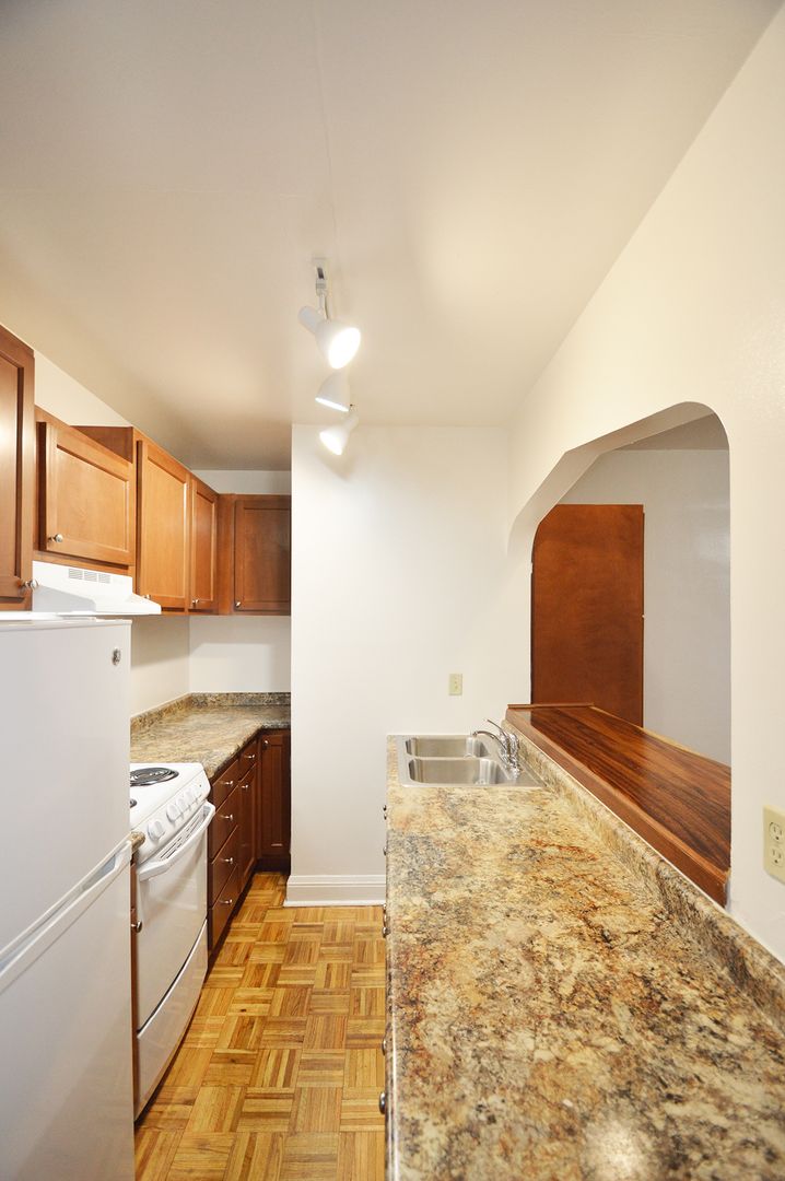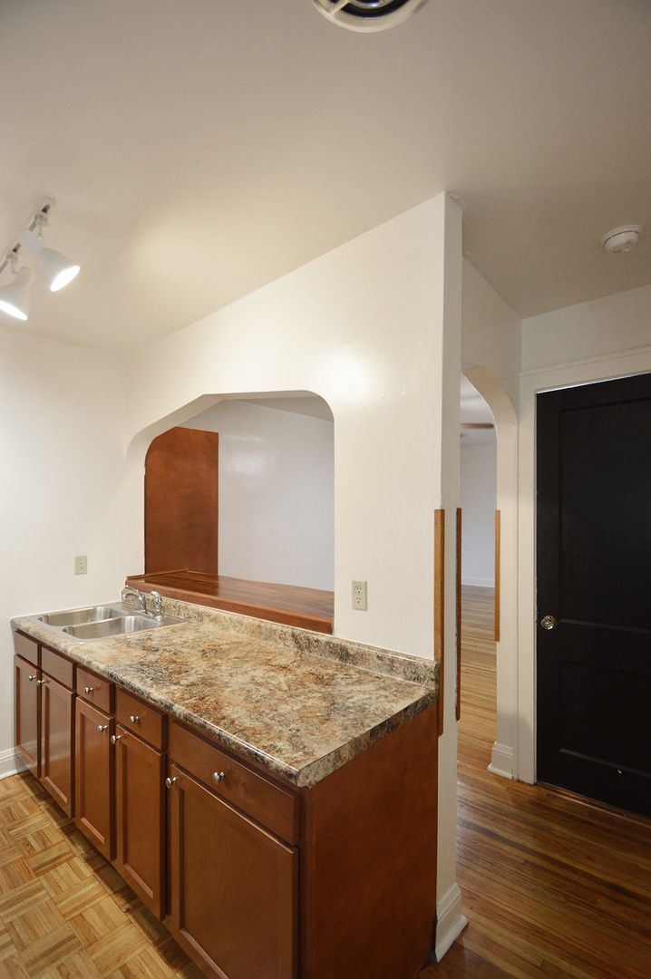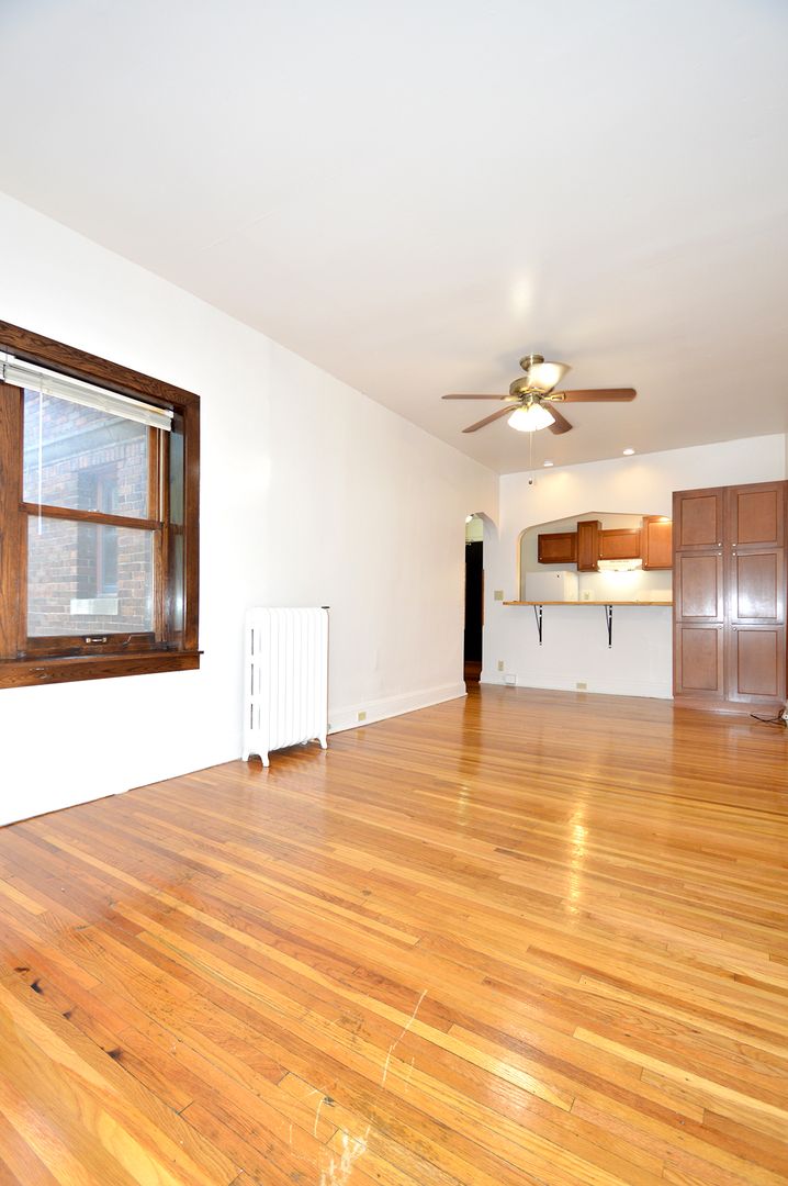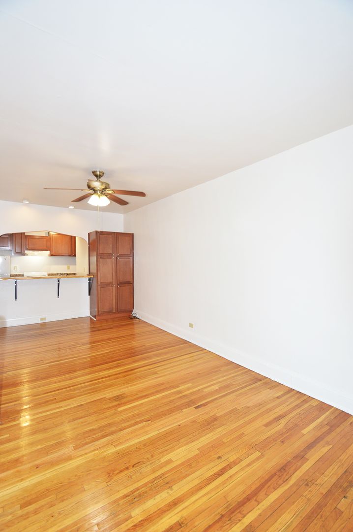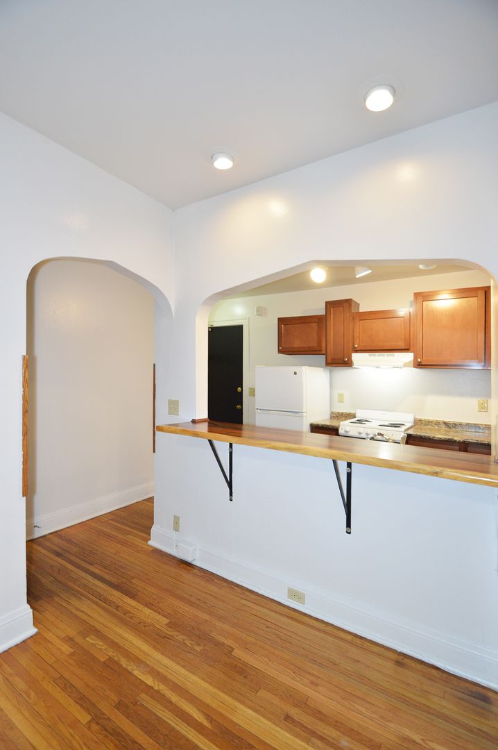 This top-floor studio apartment boasts 400 square feet of living space, featuring a galley-style kitchen with a convenient pass-through window. The kitchen is equipped with an electric range, perfect for all your cooking needs. The apartment has one full bathroom with a shower. The hardwood floors add a touch of elegance and are easy to maintain. This pet-friendly apartment welcomes your furry friends, making it a perfect place for pet owners. Experience the charm of this unique studio home and make it your own.