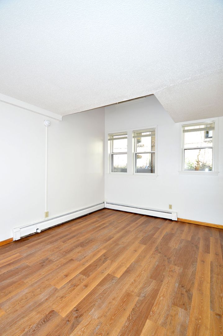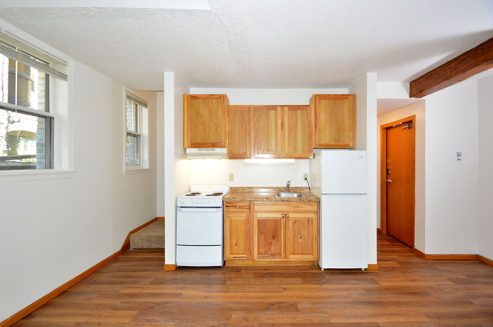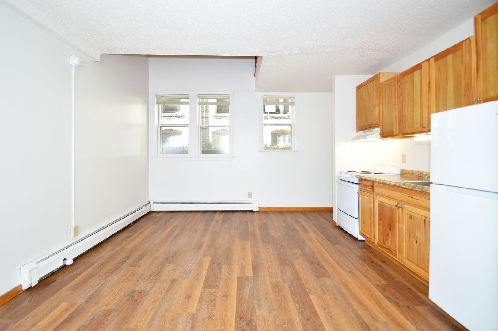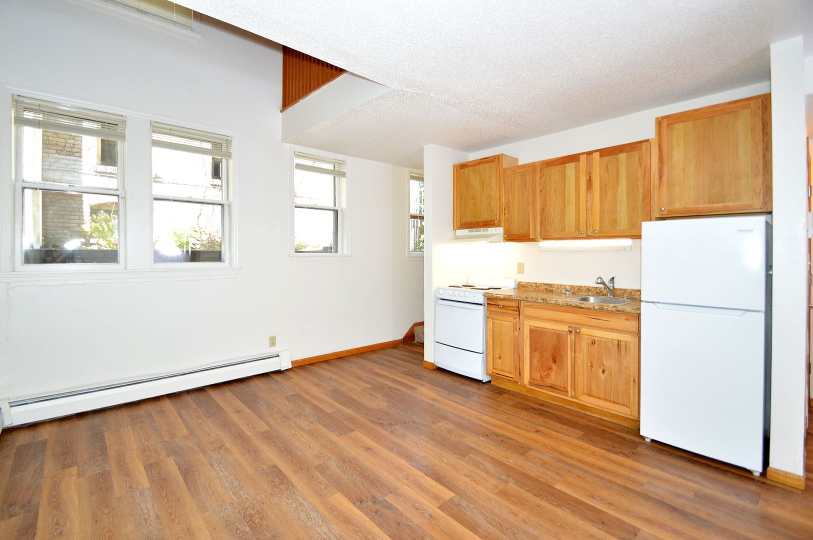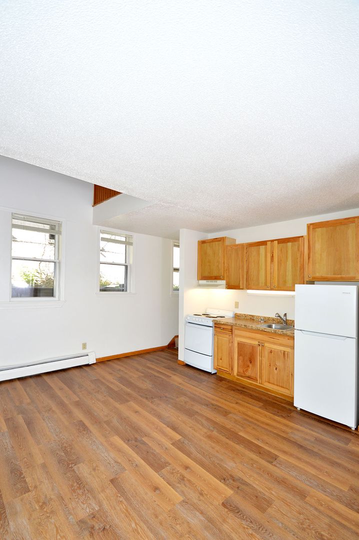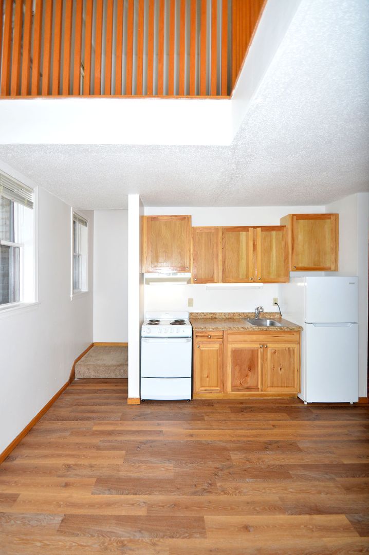 This unique 2-bedroom, 1-bathroom apartment features a modern loft design with 2 floors. The main level boasts stylish LVT flooring, while the second level is carpeted for added comfort. Enjoy plenty of natural light with west facing windows, and stay organized with four closets for all your storage needs. Our cat-friendly community includes heat, water, gas, and trash removal in your rent, leaving you responsible only for electric. The updated kitchen is perfect for cooking and entertaining. With 800 square feet of living space, this apartment is the perfect blend of style and convenience. Don't miss out on this fantastic opportunity to call our Loft Style Apartment Home your new oasis in the city!