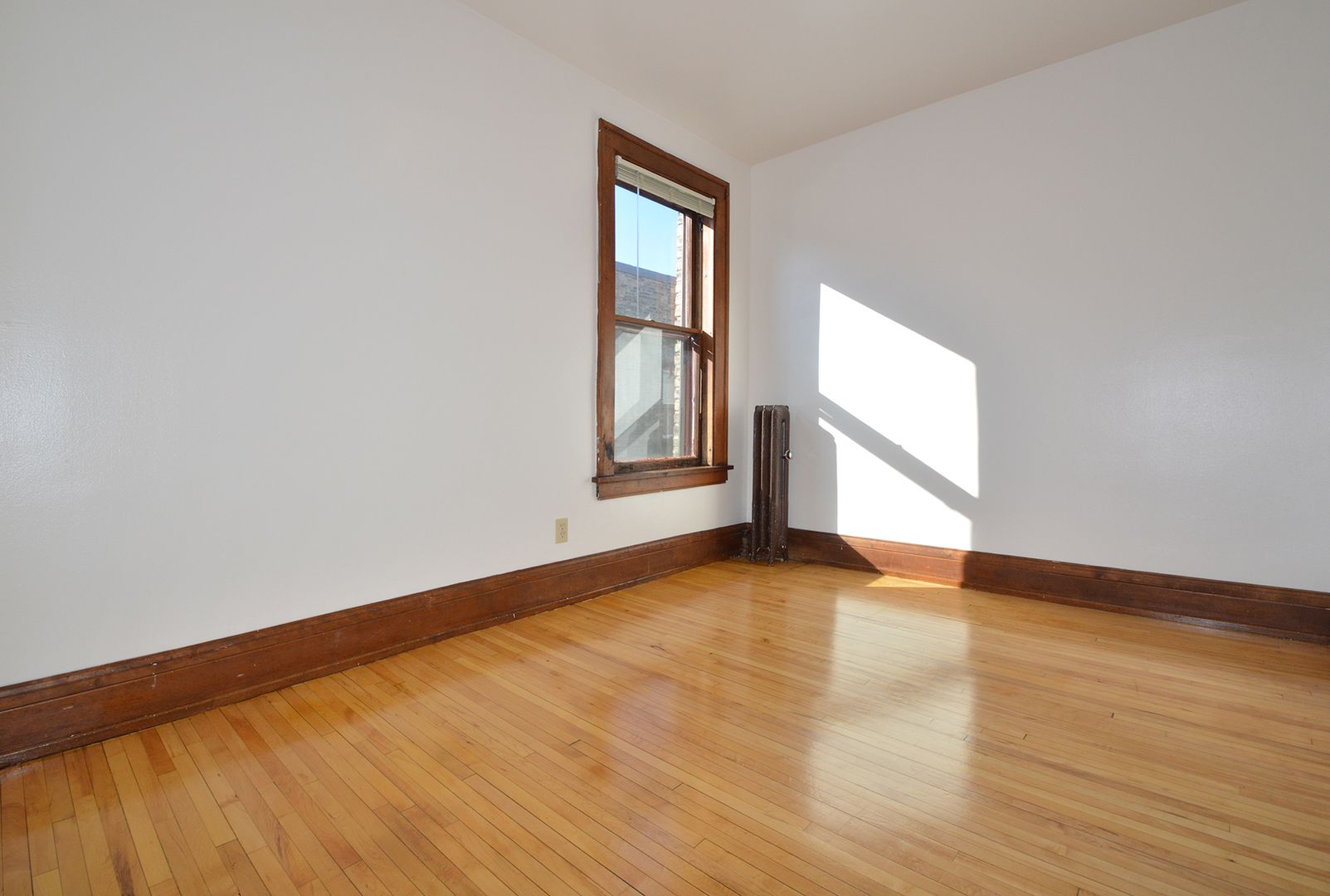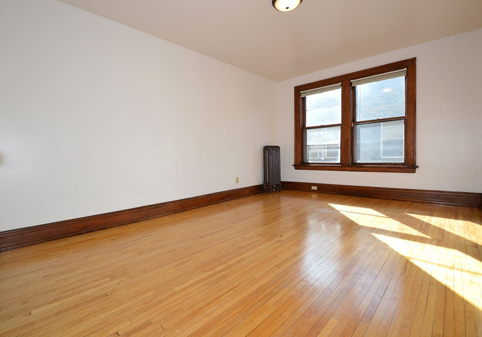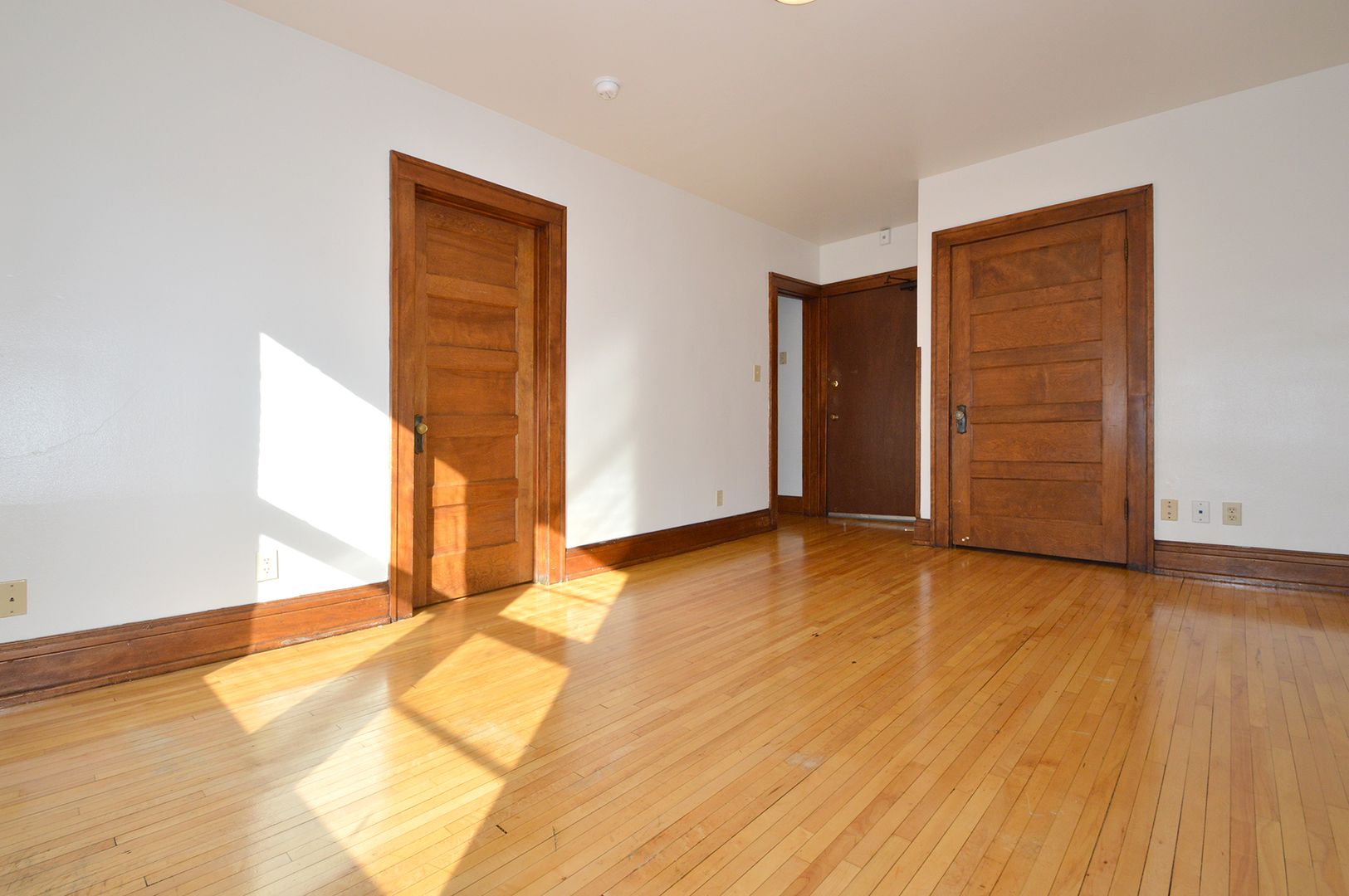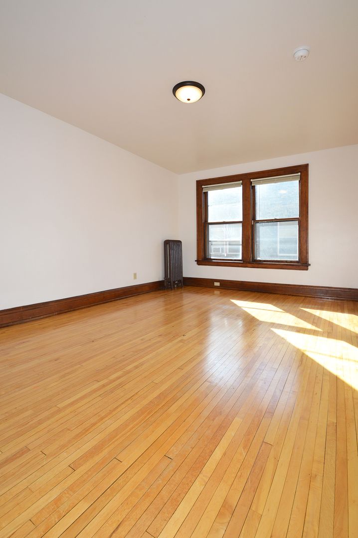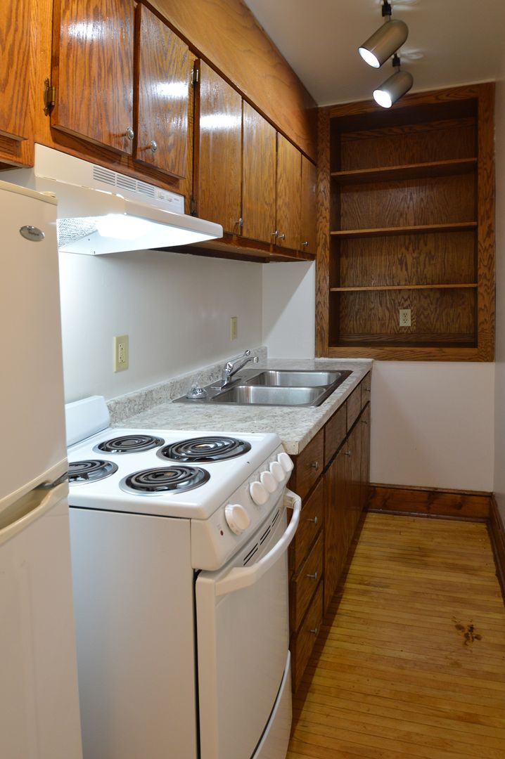 This 410 square foot, third-floor apartment home offers a unique blend of classic and contemporary living. The apartment features one spacious bedroom and a full bathroom, perfect for those who value comfort and convenience. The galley-style kitchen, equipped with an electric range, is designed for efficient cooking and meal preparation. The apartment boasts original hardwood floors, adding a touch of elegance and warmth to the space. Storage will never be an issue with two ample closets and build it shelving available for your belongings. The large south-facing windows provide an abundance of natural light. Experience the charm of this one-bedroom apartment and make it your new home.