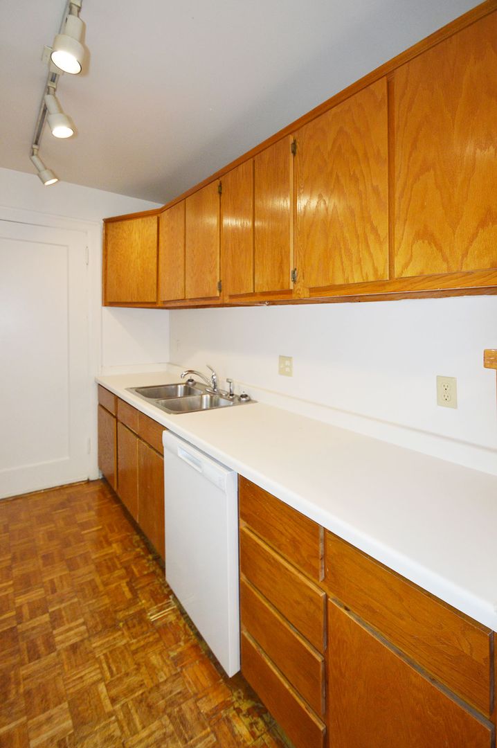 Bright Two Bedroom, One Bath Apartment with Fireplace offers 816 square feet on the third level with north-facing windows and views of the downtown Minneapolis skyline. The unit features original hardwood floors, a wood-burning fireplace, and a galley-style kitchen equipped with a gas range stove and dishwasher. Pet friendly and well-situated for city access, this apartment blends vintage character with functional kitchen amenities.