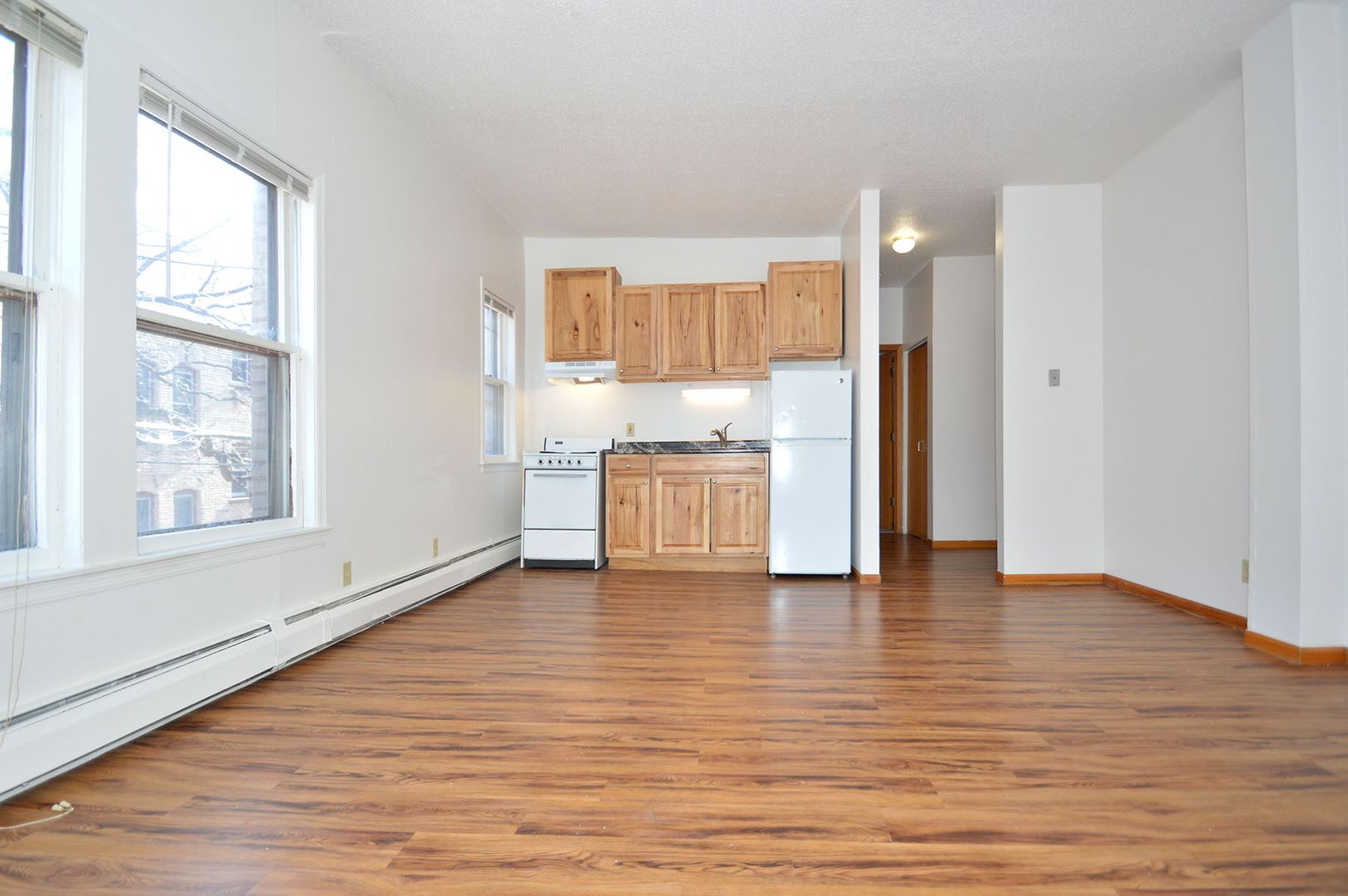 This cozy apartment features 540 square feet of living space with LVT flooring in the living area and a carpeted bedroom for added comfort. Enjoy the natural light that streams in through the east-facing windows, illuminating the space beautifully. With two closets, you'll have plenty of storage for all your belongings. The renovated hickory cabinets in the kitchen provide a modern touch, and the queen-size bedroom offers a spacious retreat at the end of the day. Plus, this pet-friendly apartment is situated on the second level for added privacy. Don't miss out on the opportunity to make this charming apartment your new home!